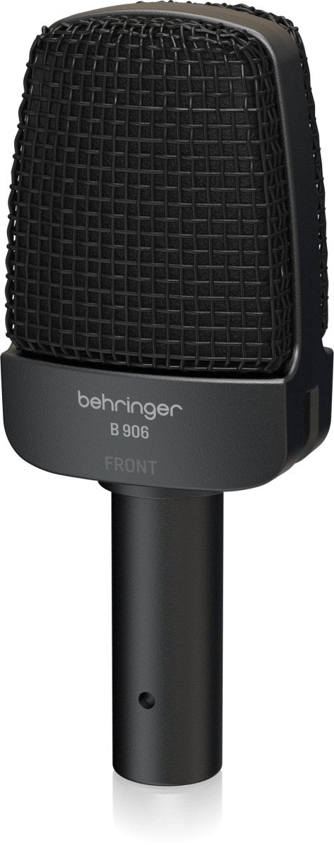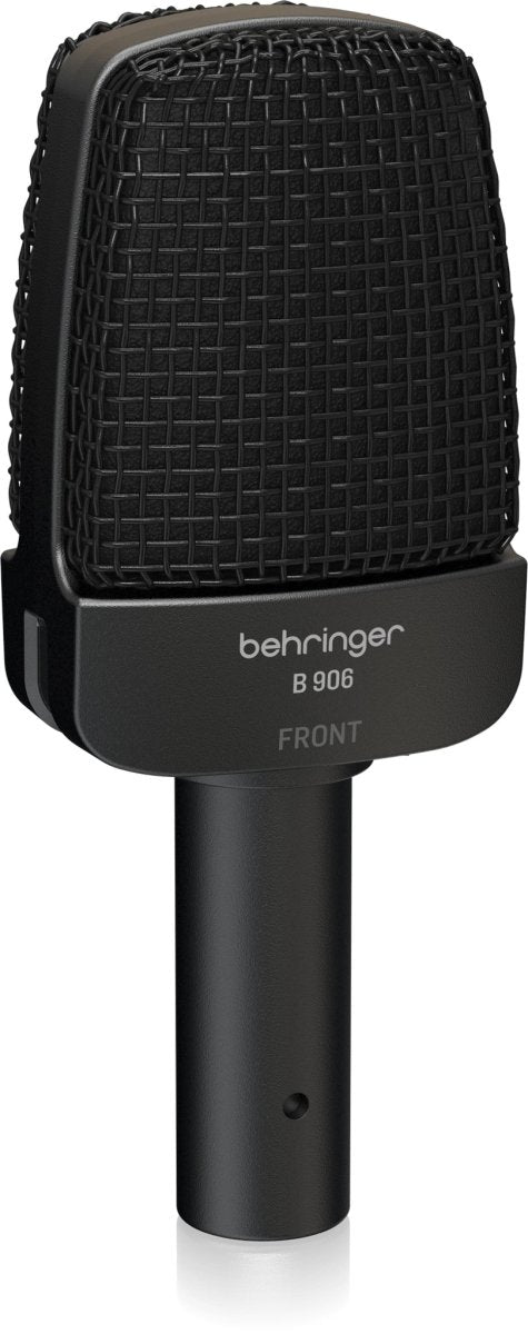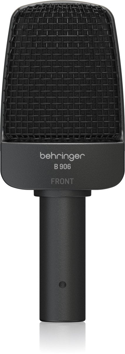 Need a versatile mic to handle drums, percussion, amplifiers and other instrumental sources? Behringer has the answer with the B 906, a super cardioid dynamic mic that's custom designed for great instrument reproduction! The B 906 instrument microphone is especially tailored for guitar amps, and is also excellent for percussion, horns and vocals.
