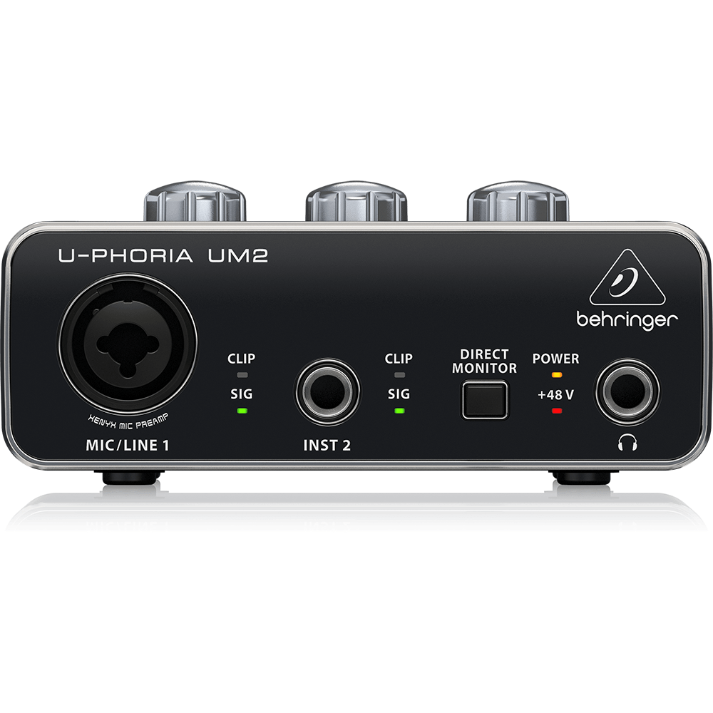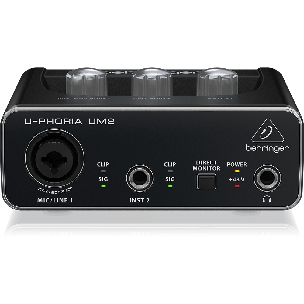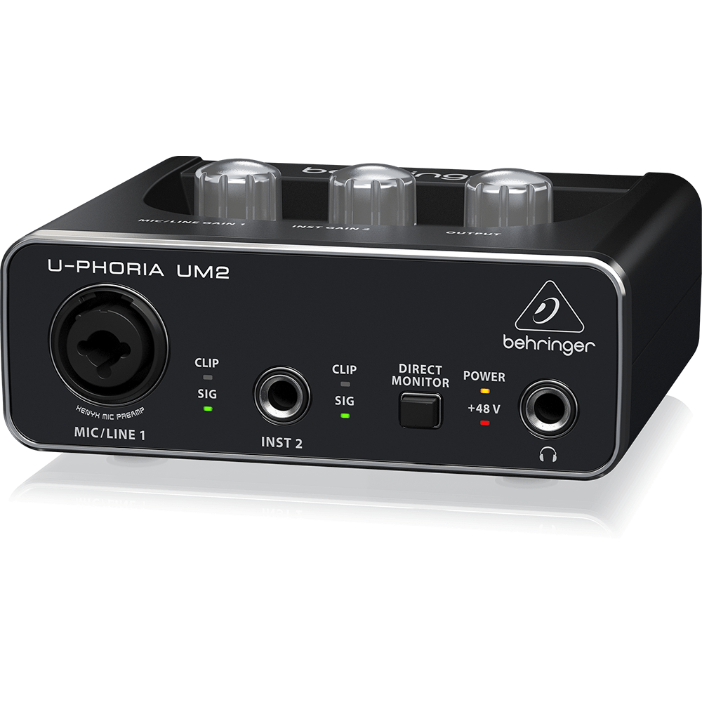 That’s why Behringer is kicking it up a notch with the amazing UM2, an ultra-compact 2 x 2, 48 kHz USB interface with a studio-grade XENYX Mic Preamp, combination XLR/TRS input for your vocal and direct instrument input (no DI required), and an additional ¼ " Instrument Input.