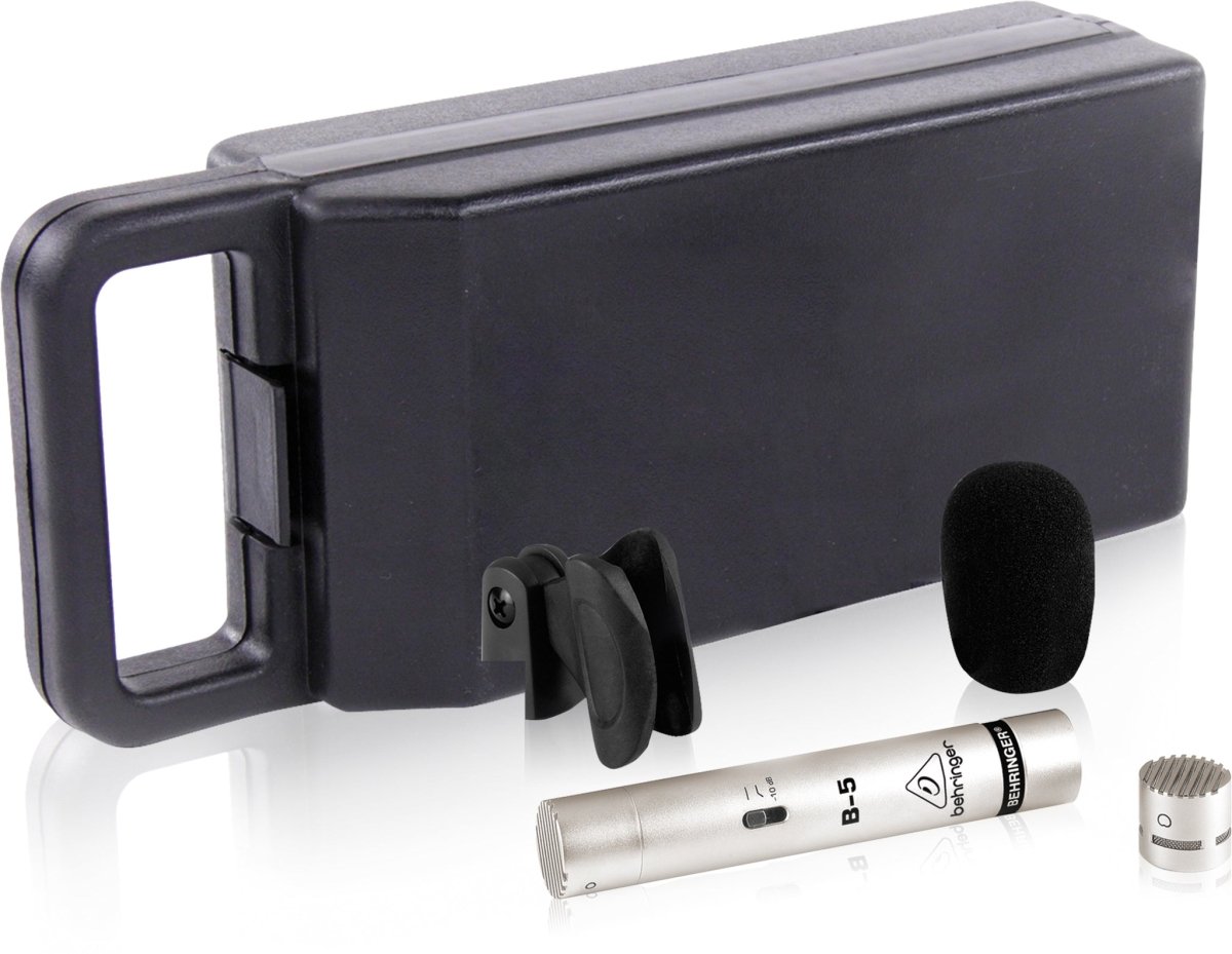 Condenser microphones are the ideal choice for capturing vocals and acoustic instruments. They are the primary type of microphone used in recording studios and radio stations. The B-5 mic is capable of capturing much more detail than most dynamic microphones because of its wider and flatter frequency response. Another difference between condenser and dynamic mics is they contain active circuitry that requires phantom power (+48 V) for operation. You can power your B-5 using any phantom power-equipped BEHRINGER XENYX mixer – plus enjoy the benefits of our state-of-the-art XENYX mic preamps.