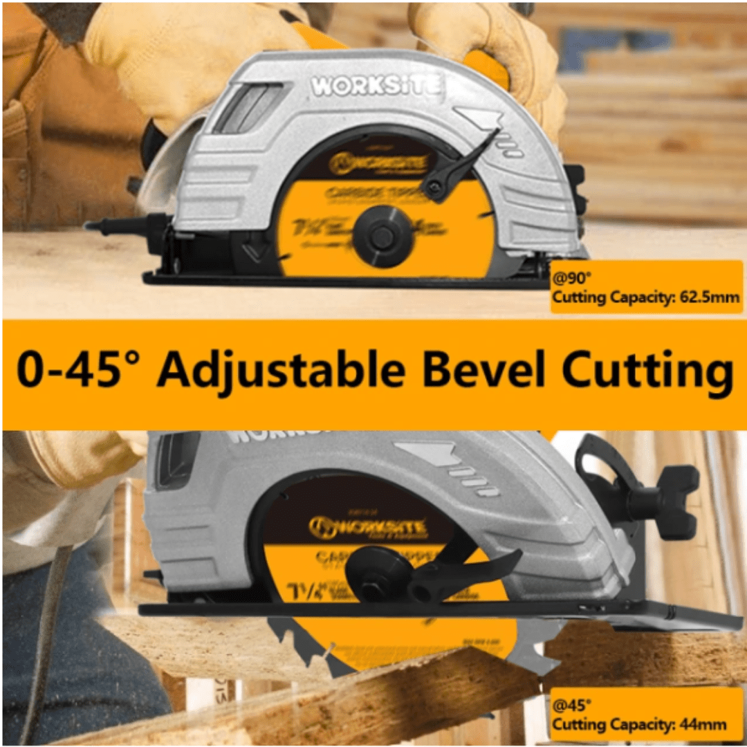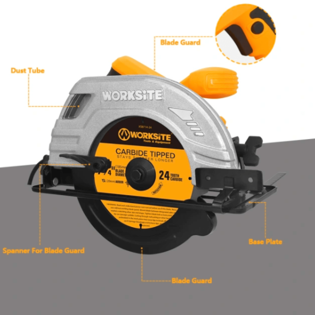 The WorkSite 185mm Circular Saw is built for high-precision cutting through materials such as wood, plastic, and metal. Powered by a 1400W motor, this saw offers adjustable cutting depth and angle settings, making it versatile for various projects.