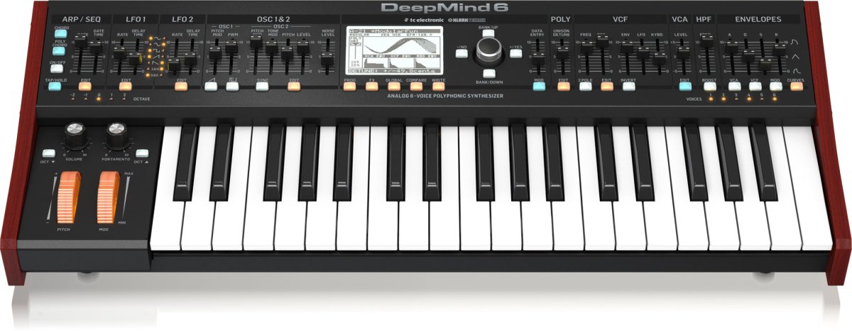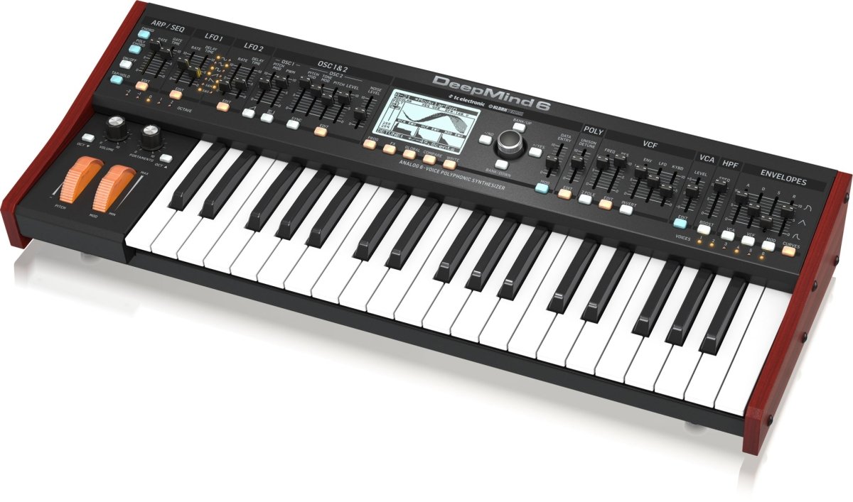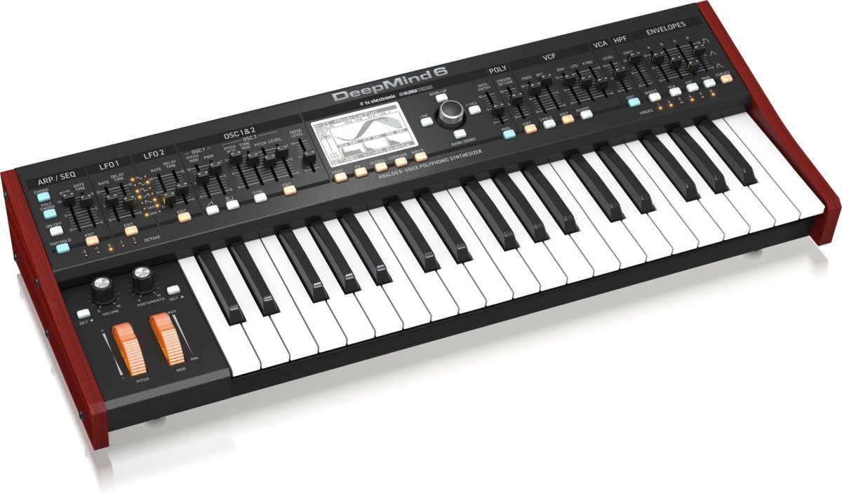 The Behringer Deepmind 6 is a powerful 6-voice polyphonic analogue synthesizer offering lush pads, warm basses, evolving textures and expressive leads. With genuine analogue circuitry, an intuitive interface and a flexible modulation matrix, it delivers inspiring sound design possibilities for live performers and studio producers. Built-in effects from TC Electronic and Klark Teknik add high-quality reverbs, delays and modulation for professional sound shaping.