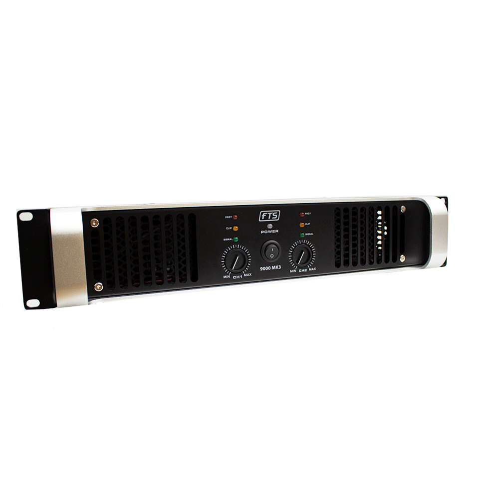 Powerful FTS-9000 MK3 amplifier with 2860W bridge mode, perfect for events and clubs. Durable, flexible, and packed with safety features.