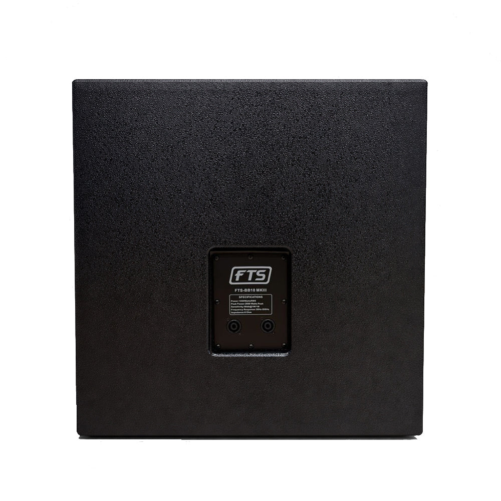 Engineered for durability and consistent performance, this bass bin is suitable for both mobile and fixed installations. Whether used as part of a larger PA system or paired with full-range speakers, the FTS-BB18 MKIII provides reliable bass reinforcement and long-term performance for demanding environments. The robust enclosure improves acoustic efficiency while protecting internal components, ensuring reliable performance under high-output conditions. Ideal for pairing with full-range speakers, the BB18 MKIII provides impactful bass that fills large spaces with authority.