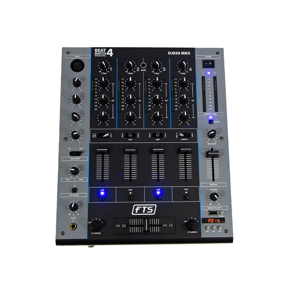 With advanced sound processing and digital effects, the Beat Match 4CH FTS-DJ850 MKII helps you create high-quality, immersive mixes. Whether you are a beginner looking to explore creative mixing techniques or a professional DJ seeking a reliable performance tool, this mixer delivers everything you need for dynamic sound control.