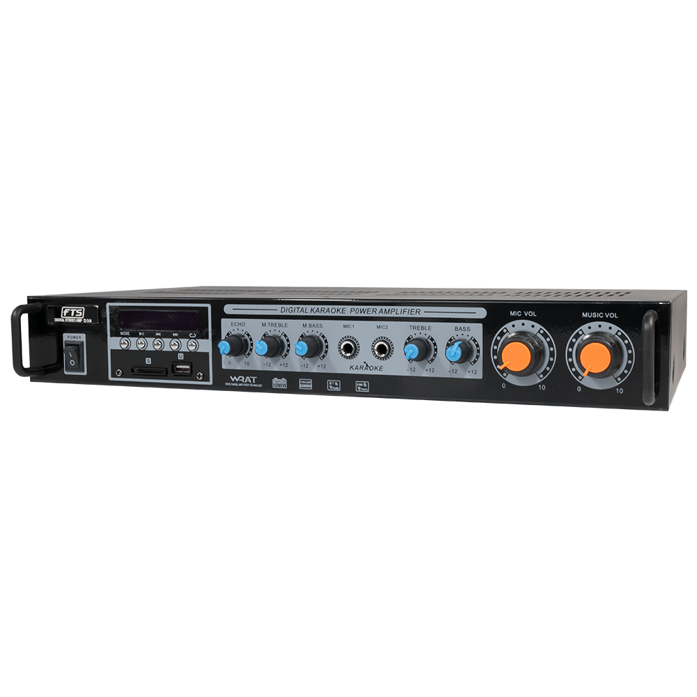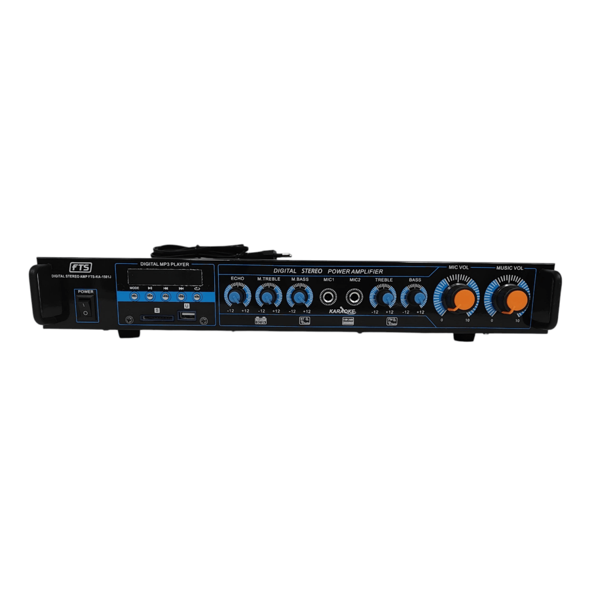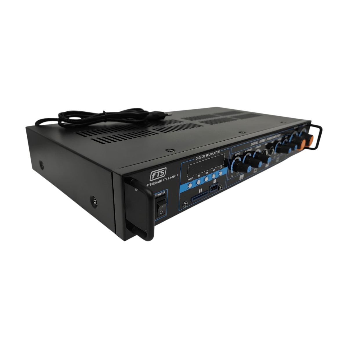 The FTS KA-1501J Digital Stereo Amplifier brings powerful, versatile audio performance to home sound systems, karaoke setups or small venues. With dual-channel output and wide-ranging connectivity, including Bluetooth, USB, AUX, FM tuner and microphone inputs, it lets you stream music wirelessly or connect wired sources for full-fledged stereo sound.