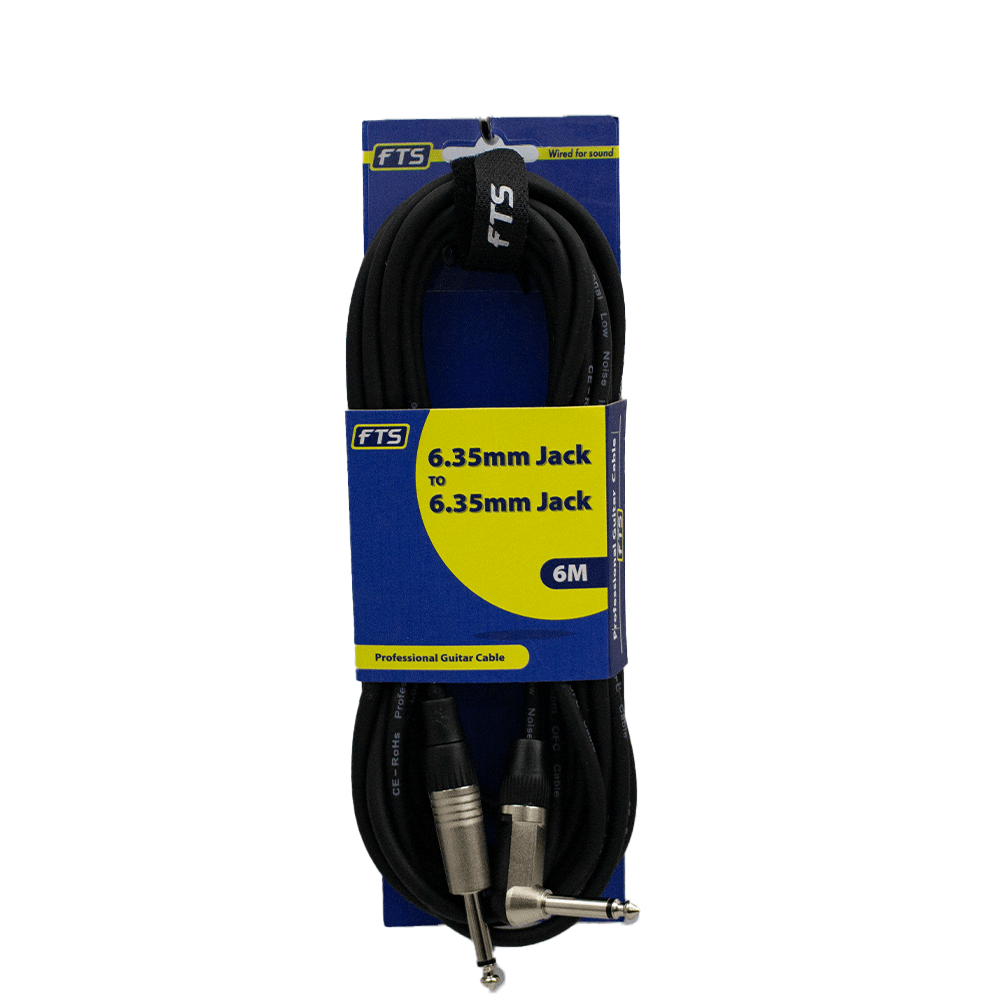 The FTS-TJ003+TJ054/6M 6-metre guitar cable is a durable, noise-resistant instrument lead designed for musicians who need extended reach on stage or in the studio. Featuring high-quality 6.35 mm (¼″) mono jack plugs on both ends, this cable delivers clean, consistent signal transmission for electric guitars, bass guitars, keyboards, pedalboards and amplifiers.