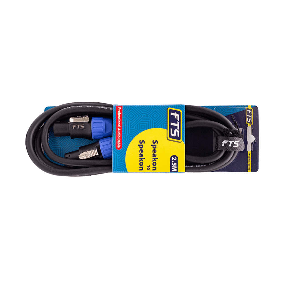 The FTS 2.5-meter Speakon to Speakon Cable [TSC033*2/2.5M] is designed for professional audio applications, ensuring clear and reliable signal transmission between amplifiers and speakers. Its durable construction makes it suitable for both live performances and studio settings.