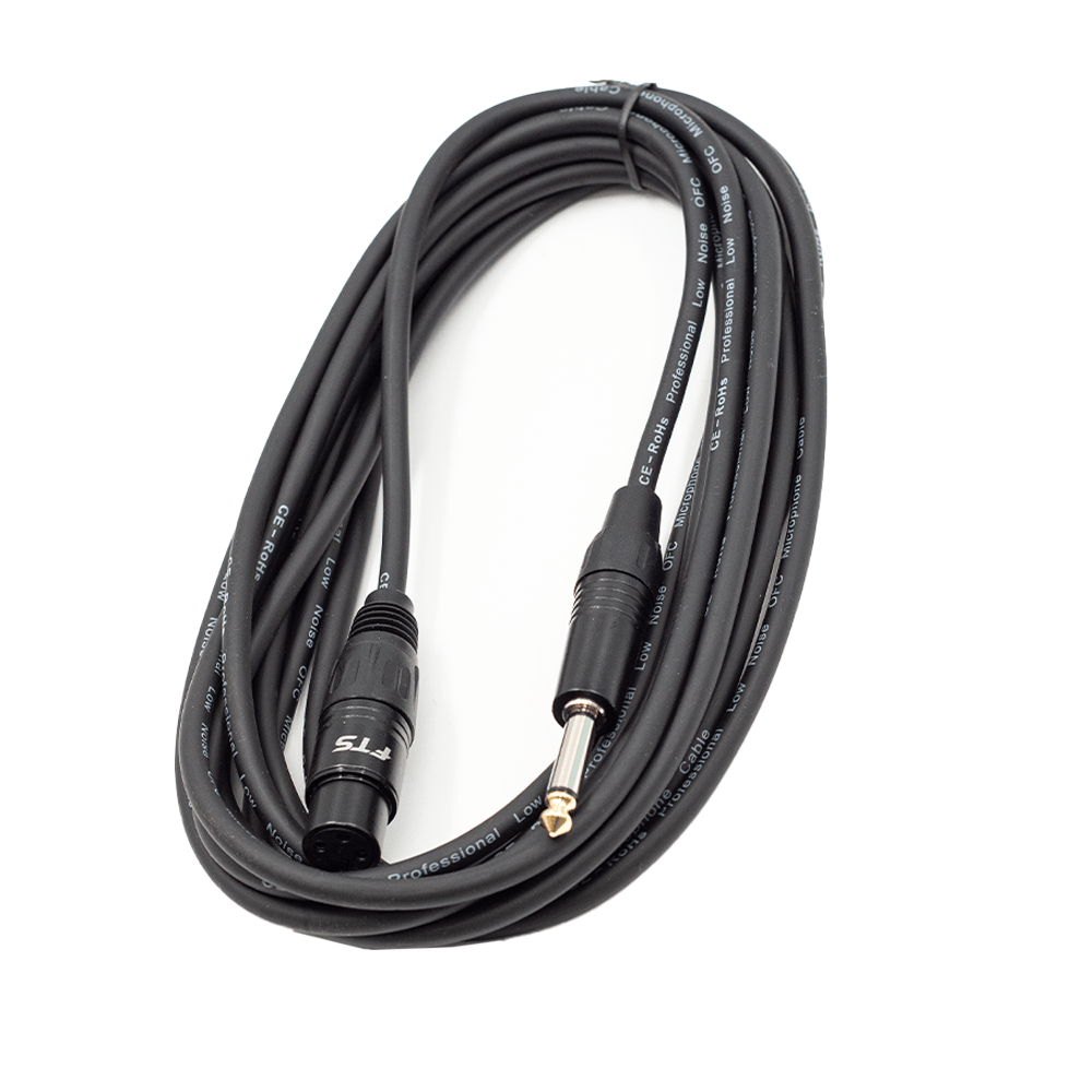 The FTS 5-meter XLR Female to 6.35mm Male Mono Jack Cable [TX009+TJ013/5M] is designed for professional audio applications, ensuring clear and reliable signal transmission. This cable is ideal for connecting microphones, mixers, and other audio equipment that require an XLR female to 6.35mm mono jack connection.