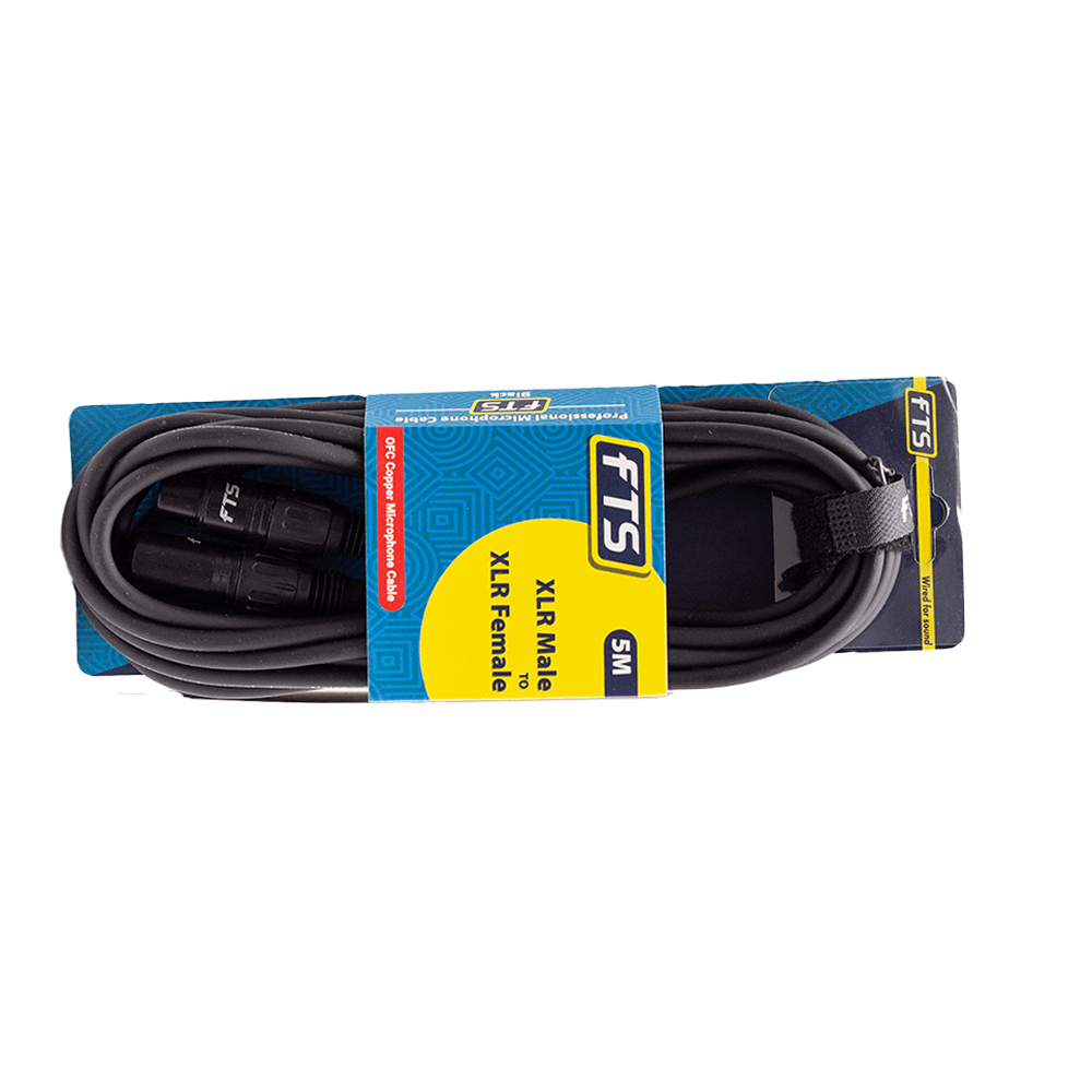 The FTS 5-meter XLR Male to XLR Female Microphone Cable in Black [TX009+TX012BK] is designed for professional audio applications, ensuring clear and interference-free signal transmission. Its durable construction makes it suitable for both live performances and studio recordings.