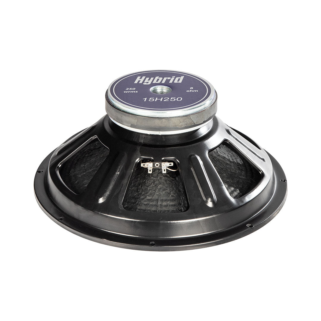 Hybrid 15H250 15″ 250W loose speaker Frame: Pressed metal basketPower Handling: 250W RMSImpedance: 8OhmVoice Coil: 2.5″Magnet: Ferrite, 60OzEfficiency: 1.6%SPL 1W/1m:... Read more