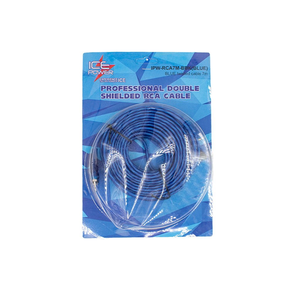 The Ice Power IPW-RCA7M-BBK offers a generous 7-metre length of 2RCA male to 2RCA male twisted-pair cable in a striking blue finish, designed for connecting audio components across longer distances, perfect for car-audio systems or home AV installations.