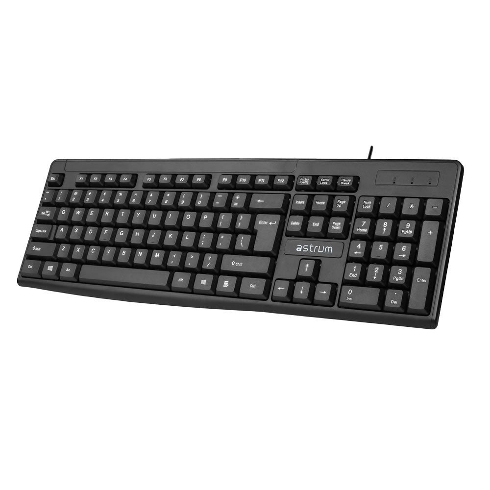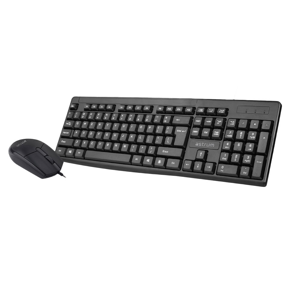 The Astrum KCW080 is a dependable wired keyboard and mouse combo crafted for daily computing needs. The full-size 104-key keyboard features silent membrane keys for a noise-free workspace, along with tilt-adjustable legs to ensure ergonomic comfort. Its spill-resistant design adds extra protection against accidental liquid spills, making it a reliable choice for office, school, or home use.