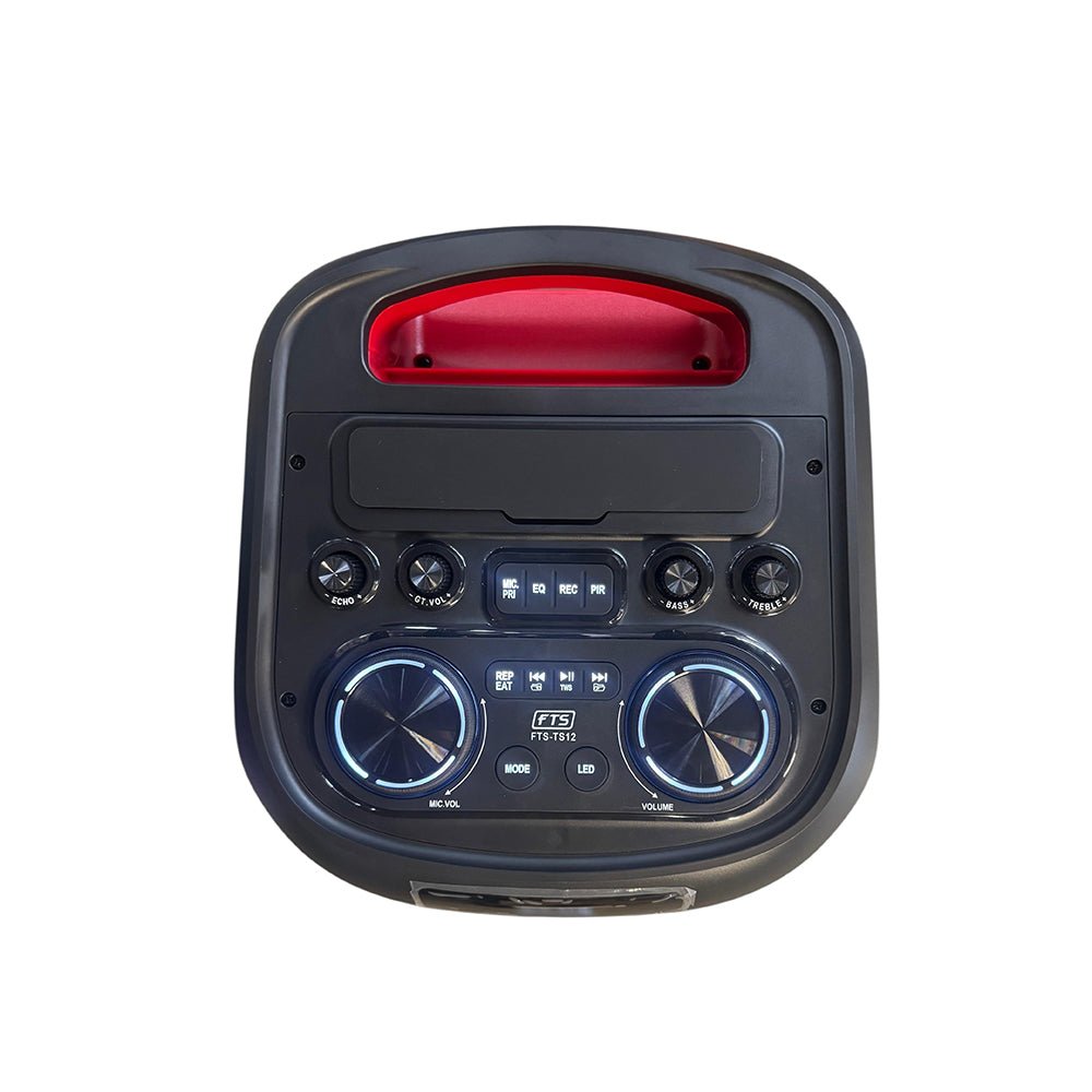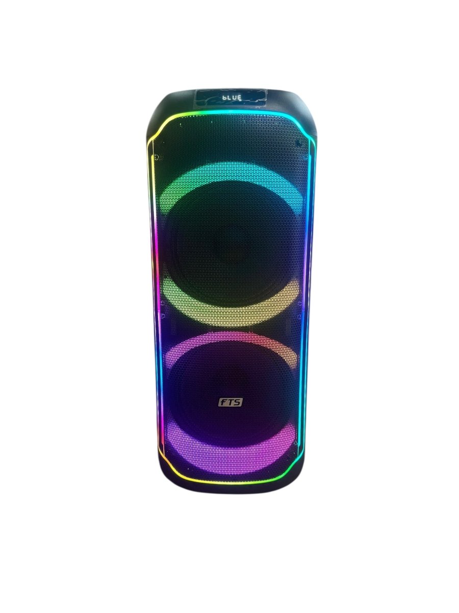 The FTS Kokota TS12 MKII 12" Double Portable Battery Speaker is built to deliver powerful, high-energy sound for parties, outdoor gatherings, and mobile entertainment setups. Equipped with dual 12-inch woofers and a tweeter, it produces deep bass and clear highs suitable for both indoor and outdoor events. The speaker features a rechargeable 12 V lead-acid battery for portable use and supports multiple playback options including Bluetooth, USB, SD card, AUX input, and FM radio. A built-in control panel with LED display and a remote control allows easy operation, making it ideal for DJs, events, karaoke sessions, and backyard celebrations.