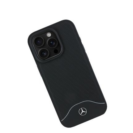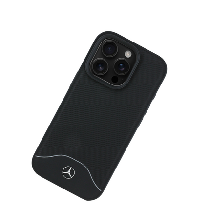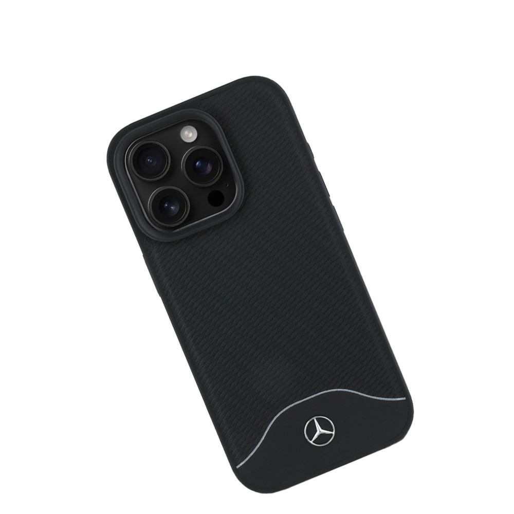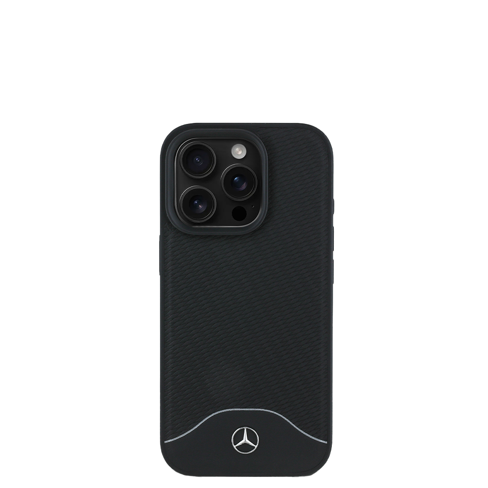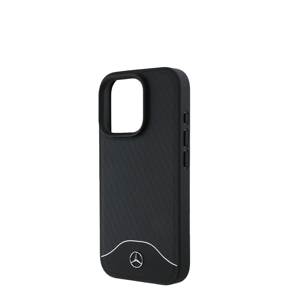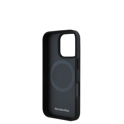MERCEDES-BENZ Magsafe Case iPhone 16 Pro Black Leather with Grey Stripe
