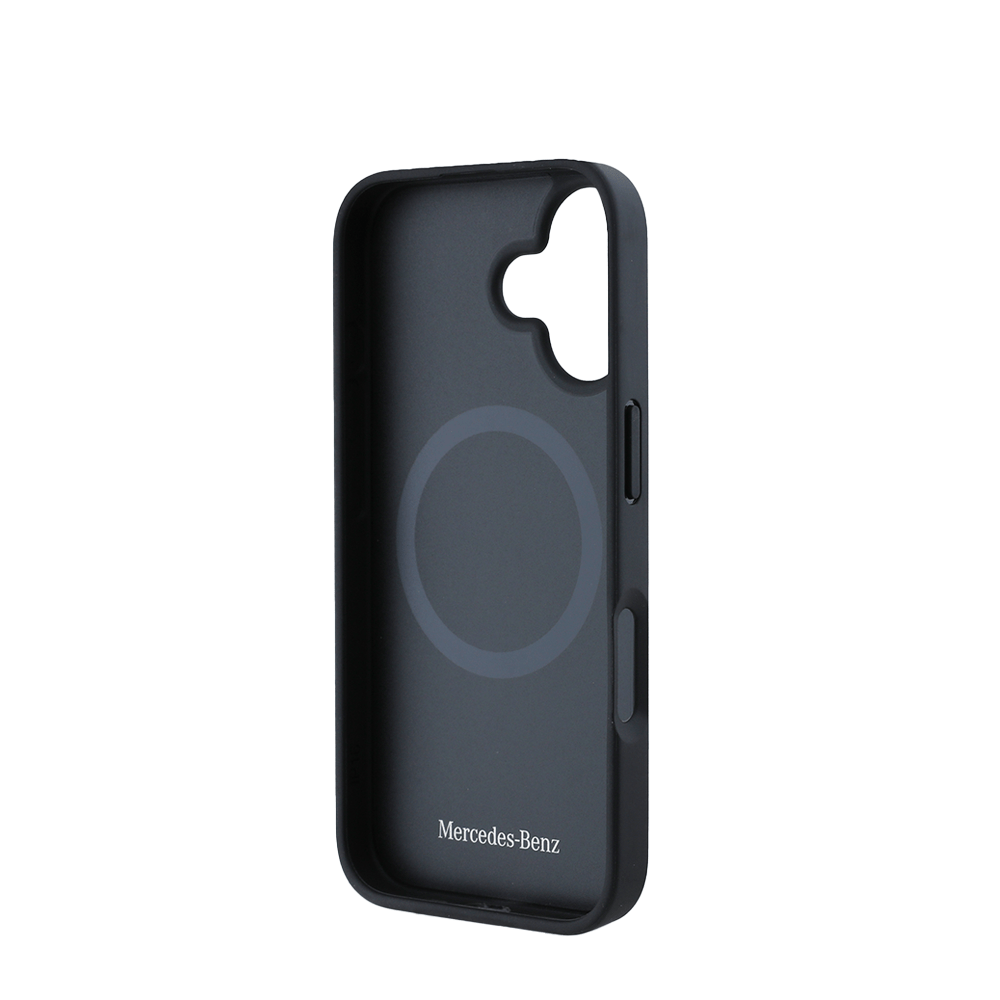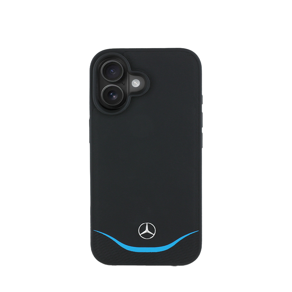 Protect your iPhone 16 in style with the officially licensed Mercedes-Benz MagSafe Black Genuine Leather Case. Featuring a distinctive vertical contrasted line, this premium case offers luxury design, reliable protection, and seamless MagSafe compatibility.