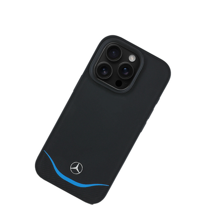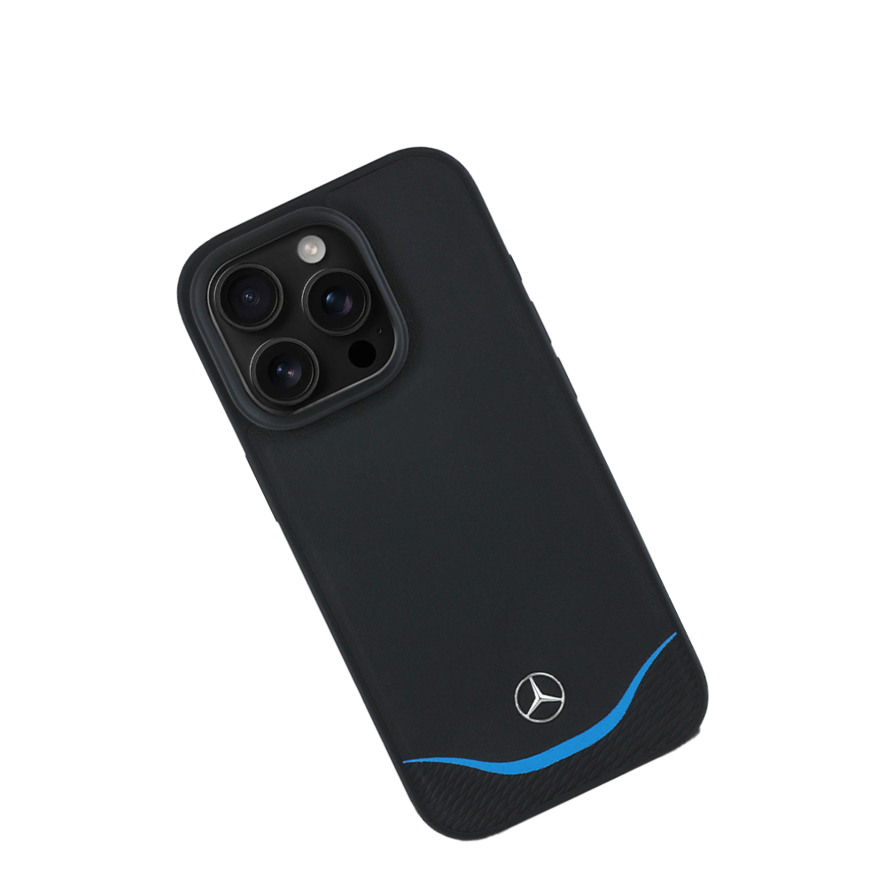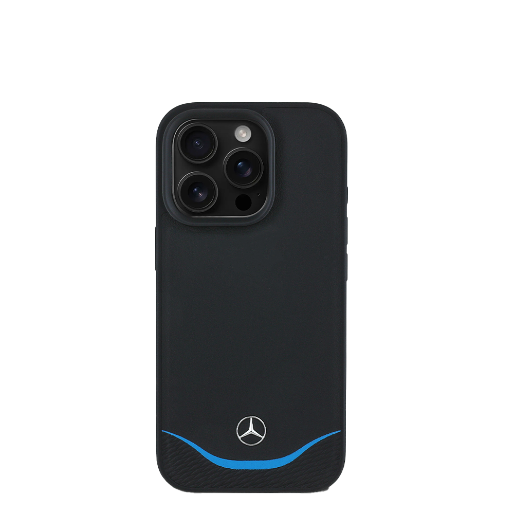 Protect your iPhone 16 Pro in style with the officially licensed Mercedes-Benz MagSafe Black Leather Case. Featuring a distinctive contrasted blue horizontal curve, this premium case offers luxury design, reliable protection, and seamless MagSafe compatibility.