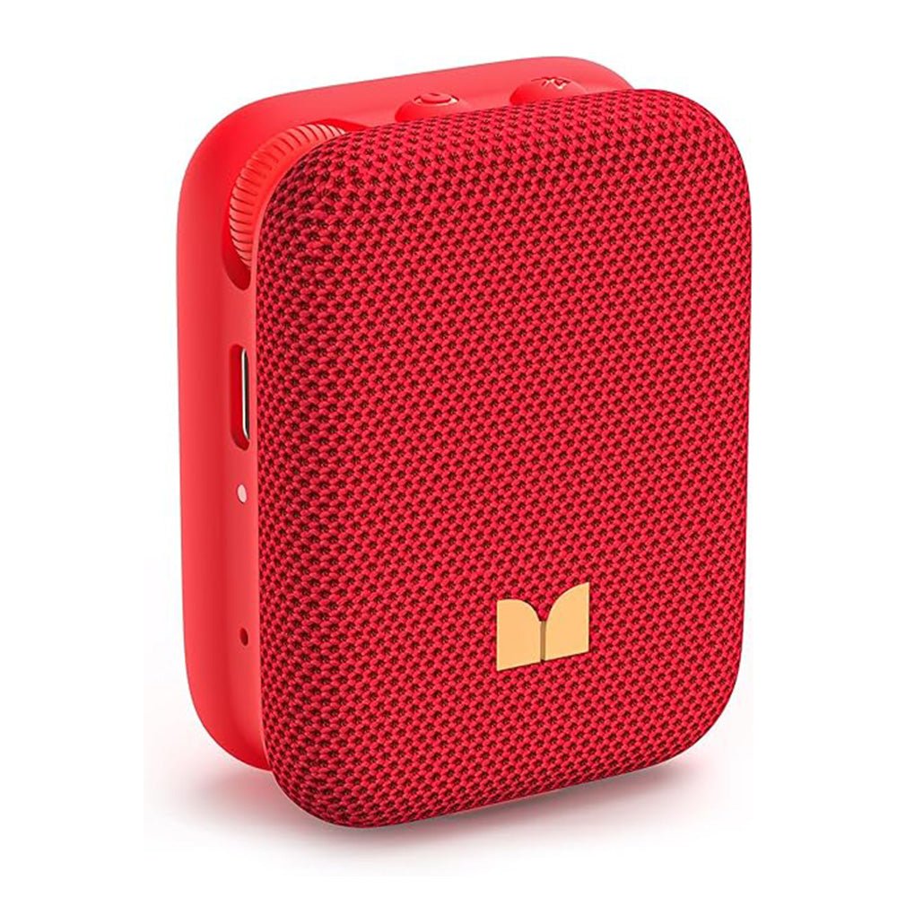 Despite its size, the speaker boasts 3W output power, a 400mAh rechargeable battery, and support for Bluetooth Broadcast, allowing it to connect with over 100 compatible speakers—ideal for group listening or outdoor events. The vibrant red fabric finish, tactile controls, and USB-C charging make it as functional as it is eye-catching.