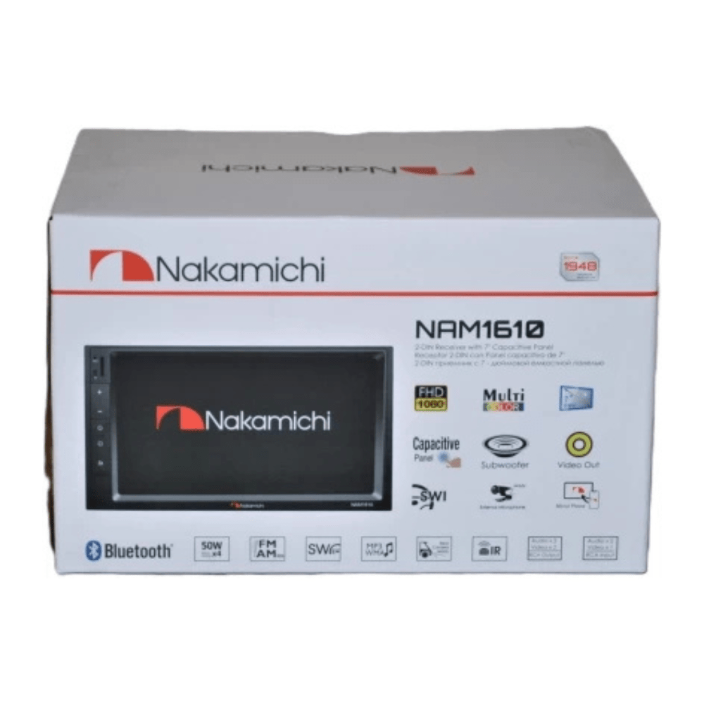 NAKAMICHI NAM1610 Has A 7″ Double DIN Meshless Multi-Media Receiver Suitable For Universal Use Across All Vehicle Use Across All Vehicle Models. This Unit Supports Bluetooth (Hands-Free Calling And Wireless Audio Streaming) And Has A 1080P Video Playback Capable Fully Capacitive Touch Screen. Optional Accessories Are The NC-5L And BTMIC5 (Sold Separately)