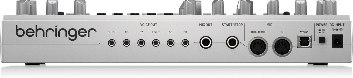 6 independent analog outputs for external processing or recording your rhythms as multi-track audio