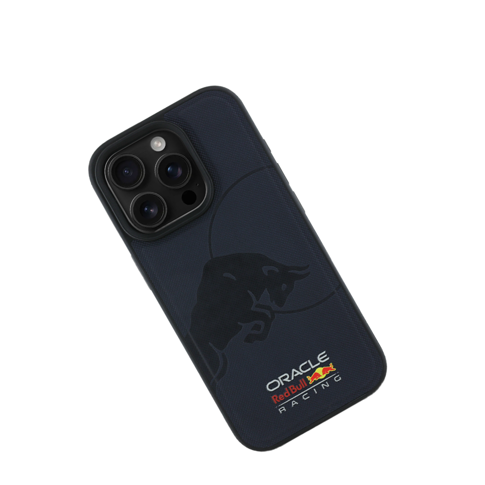 Protect your iPhone 16 Pro Max in style with the officially licensed Red Bull Racing MagSafe Meshed Navy Leather Case. Featuring a sophisticated meshed texture, a distinctive blue ring, and a durable metal camera ring, this premium case offers motorsport-inspired design, reliable protection, and seamless MagSafe compatibility.