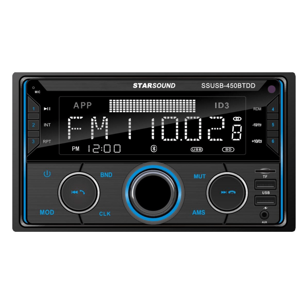 Upgrade your vehicle's audio system with the Starsound SSUSB-450BTDD Double Din Media Player, featuring Bluetooth connectivity, USB and TF card support, 65W x 4 power output, and a 3-band equalizer for a personalized in-car entertainment experience.
