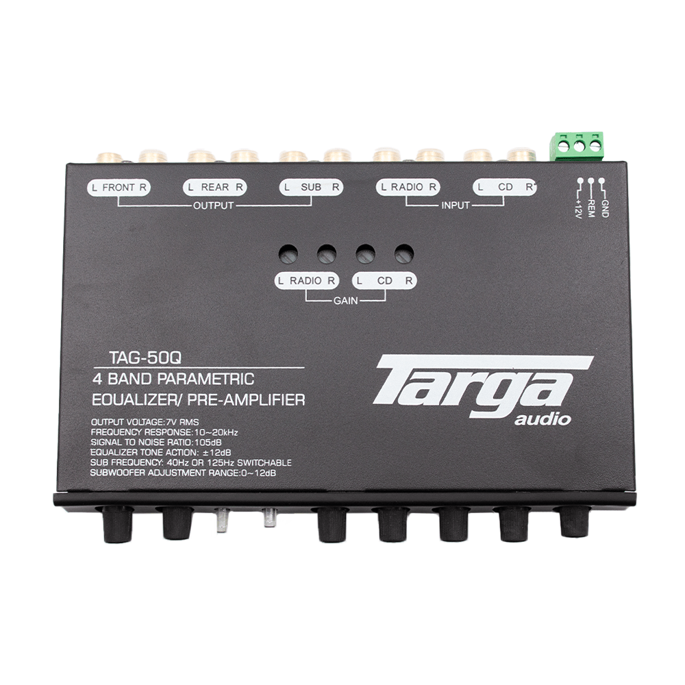Upgrade your vehicle’s audio system with the TAG-50Q—a compact yet powerful 4-band parametric equaliser and pre-amplifier designed for serious sound tuning.